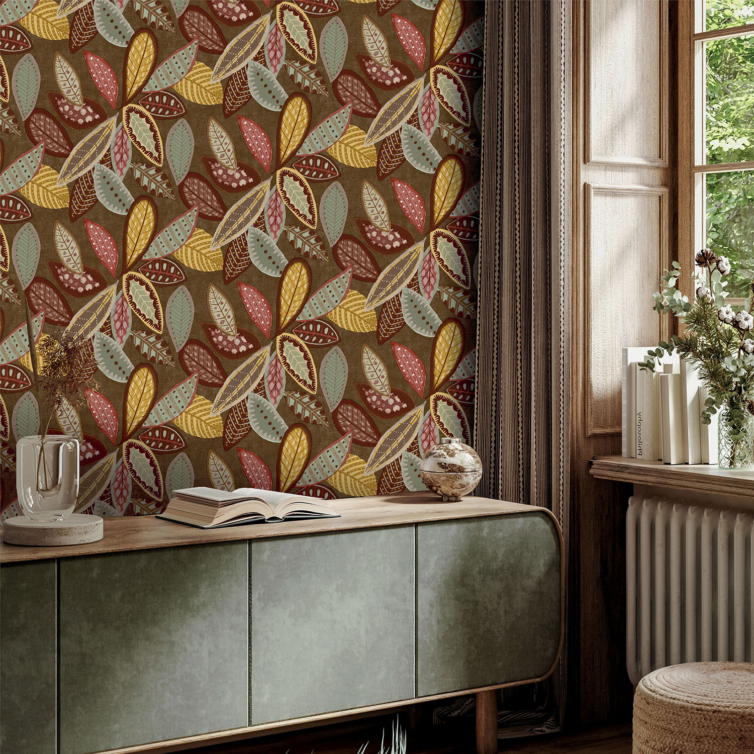 Floral Fusion parato in vinilico su tnt , Rotoli da mt.10,05×0,53